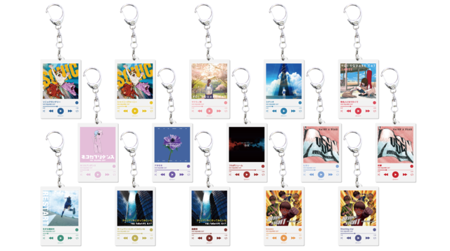 再生画面をオマージュした初のアクリルキーホルダー。 君の推し曲を引き当てろ! 【Variation】:全15種類 ※ランダム販売